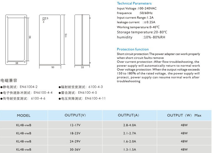 短路保護:電源適配器在短路解除時能正常工作恢復(fù)